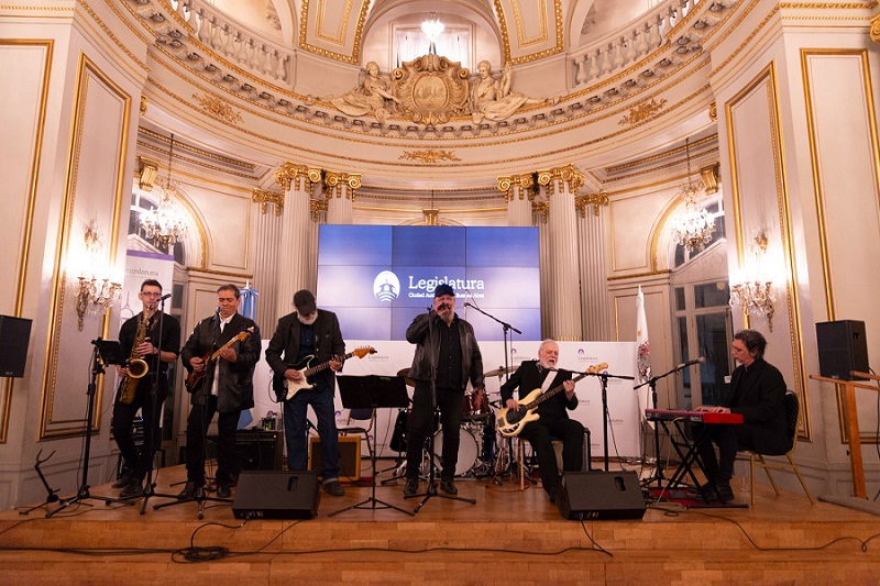 El Cuerpo Legislativo de la Ciudad reconoció el 45 aniversario de la agrupación Memphis La Blusera. El acto se desarrolló en el Salón Dorado del Palacio Legislativo y contó con la presencia del diputado Matías López –en reemplazo de Diego García de García Vilas-, el fundador, vocalista y bajista de la banda, Daniel “Ruso” Beiserman, y el actor y humorista, Juan Acosta.