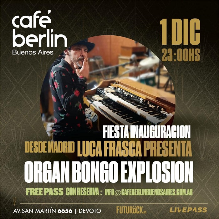 Luca Frasca empezó a los 18 años tocando con Pappo Blues, tras grabar 3 discos con él, marchó a Europa y se instaló en España dónde siguió trabajando como músico, especializándose en el órgano Hammond. Acompañó a Buddy Miles, Mike Taylor, Phil Gay, James Cotton, Miguel Bosé y Mastretta, entre otros. Tras sus 3 anteriores proyectos, El Show de Dodó, Blueperro y El Hombre Burbuja, presenta Organ Bongo Explosion. El proyecto se ha creado alrededor del sonido del órgano Hammond B3, arraigándose en la música, reggae, dub, electrónica y cumbia psicodélica , envueltas en aires arabescos, con una base percusiva e hipnótica. Sus melodías recuerdan a la música de las películas de David Lynch y Jim Jarmusch con un toque electrónico.