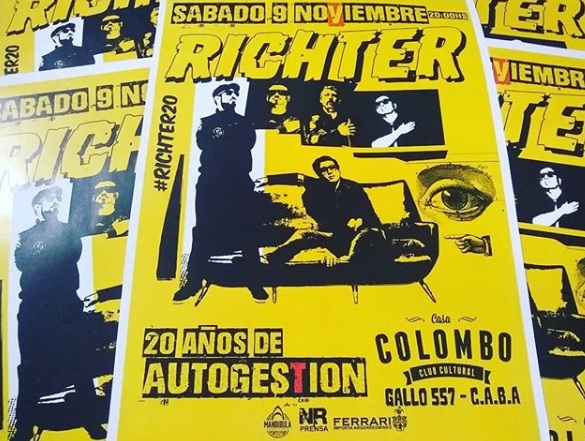 Y el sábado 9-11 desde la 20 hs. en Casa Colombo , Richter cierra este ciclo y festeja 20 años, 20 años de Autogestión con un show que promete sorpresas y un recorrido por temas de toda su carrera con invitados, show, parafernalia y mucha música.